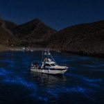 The trip starts from Puerto de Mazarrón, departing at 9:00 pm for a night cruise to a quiet cove away from light pollution.